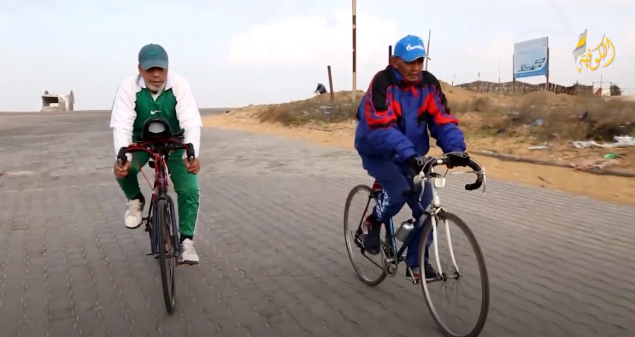 وبين أنه على الرغم من كُبر سنه، الا أنه ما زال يمارس رياضة سباق الدرجات الهوائية مع أقرانه المسنين التي تتراوح أعمارهم ما بين "70 الى 88 عاماً"، على طريق البحر في مخيم دير البلح وسط قطاع غزة.