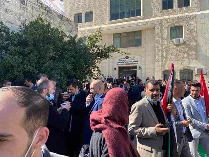 بالصور|| وقفة احتجاجية حاشدة للمحامين أمام المجلس التشريعي برام الله