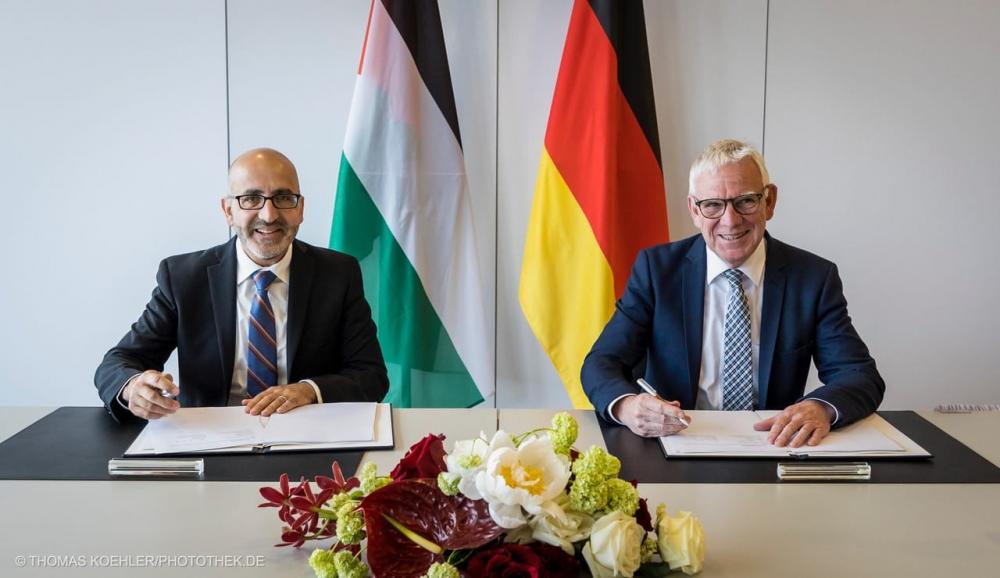 وقع الوفدان الفلسطيني والألماني بروتوكول التعاون، عقب اختتام المشاورات السنوية بين الطرفين والتي تهدف لاستعراض ومناقشة البرامج والمشاريع التنموية للعامين 2024-2023، اليوم الثلاثاء في العاصمة الألمانية برلين.