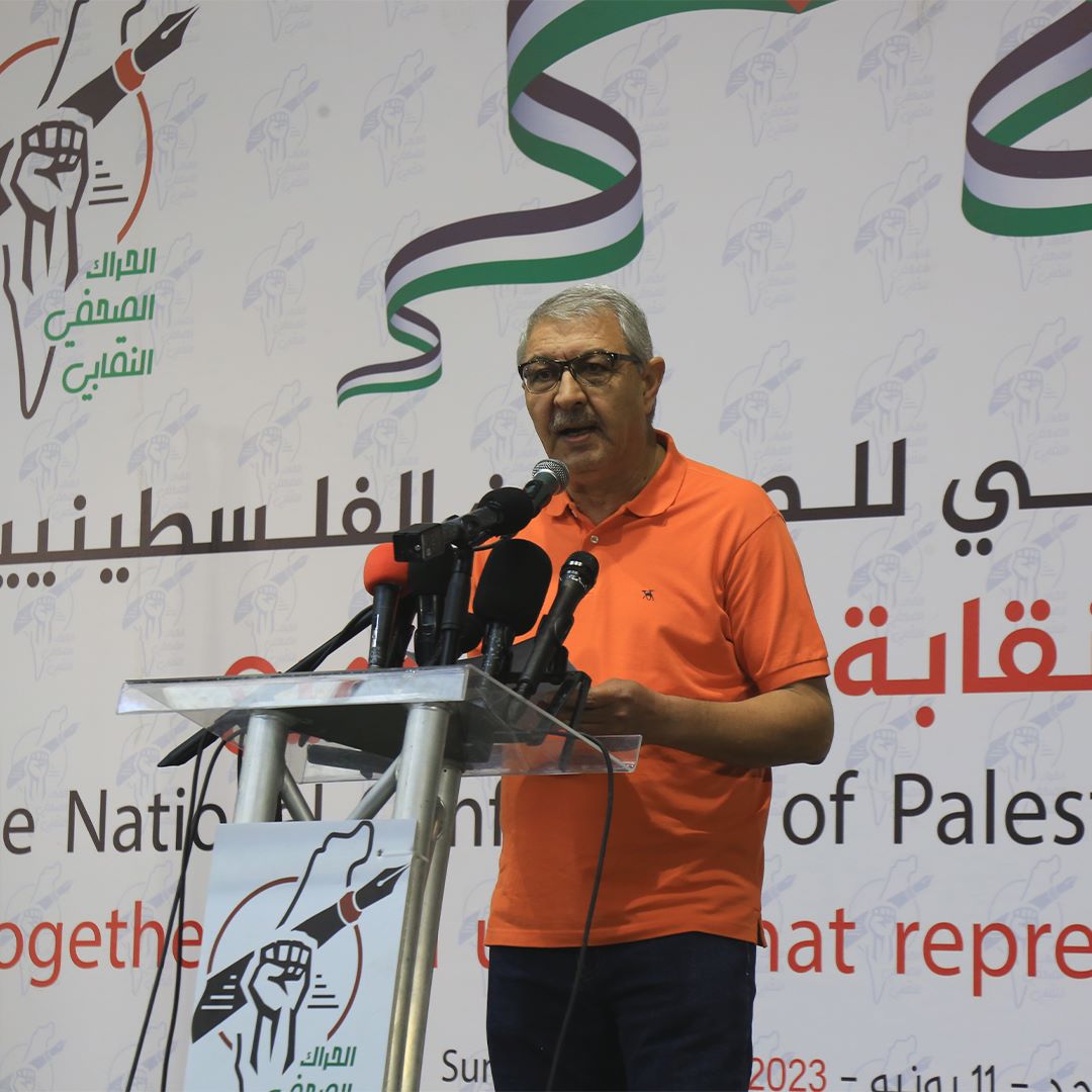 كما دعا مختلف الأطراف للوصول إلى اتفاقٍ وطنيٍ شاملٍ يحمي النقابةَ ويصونها، ويُبقي عليها بيتا واحدا موحدا مستقلا؛ لمواجهةِ كل التحدياتِ، والتصدي لكلِ الانتهاكاتِ، فلسطينيًا وإسرائيليًا، قائلًا:" المسؤوليةُ على عاتقنِا كبيرة، والحملُ ثقيلٌ، فالقدسُ وفلسطينُ تنتظرانِ منا الكثيرَ، وعلينا، جميعًا، أن نكتبَ بلغةٍ وطنيةٍ تصالحيةٍ وحدويةٍ، وأن لا نسمحَ بأنْ يسجلَ التاريخُ علينا أننا كنا جزءاً من الانقسامِ والتشرذمِ".