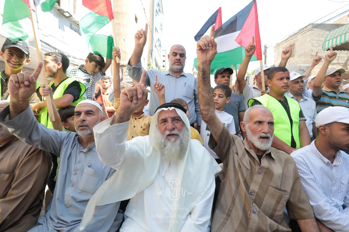 وانطلقت المسيرة من دوار المنارة، وجابت شوارع المدينة، ردد المشاركون فيها الشعارات المنددة بجرائم الاحتلال.