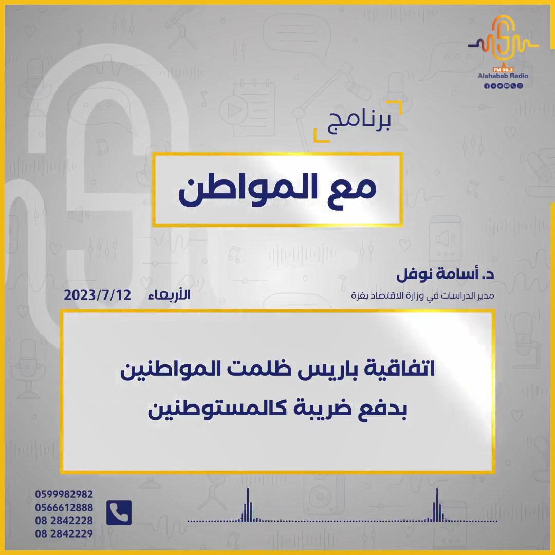 د. أسامة نوفل: اتفاقية باريس ظلمت المواطنين بدفع ضريبة كالمستوطنين