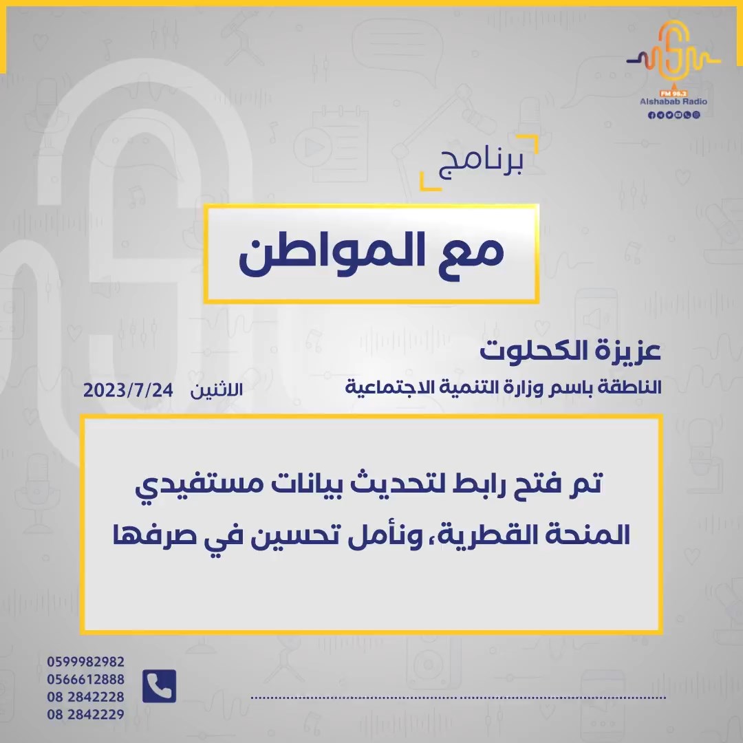 عزيزة الكحلوت.. تم فتح رابط لتحديث بيانات مستفيدي المنحة القطرية، ونأمل تحسين في صرفها