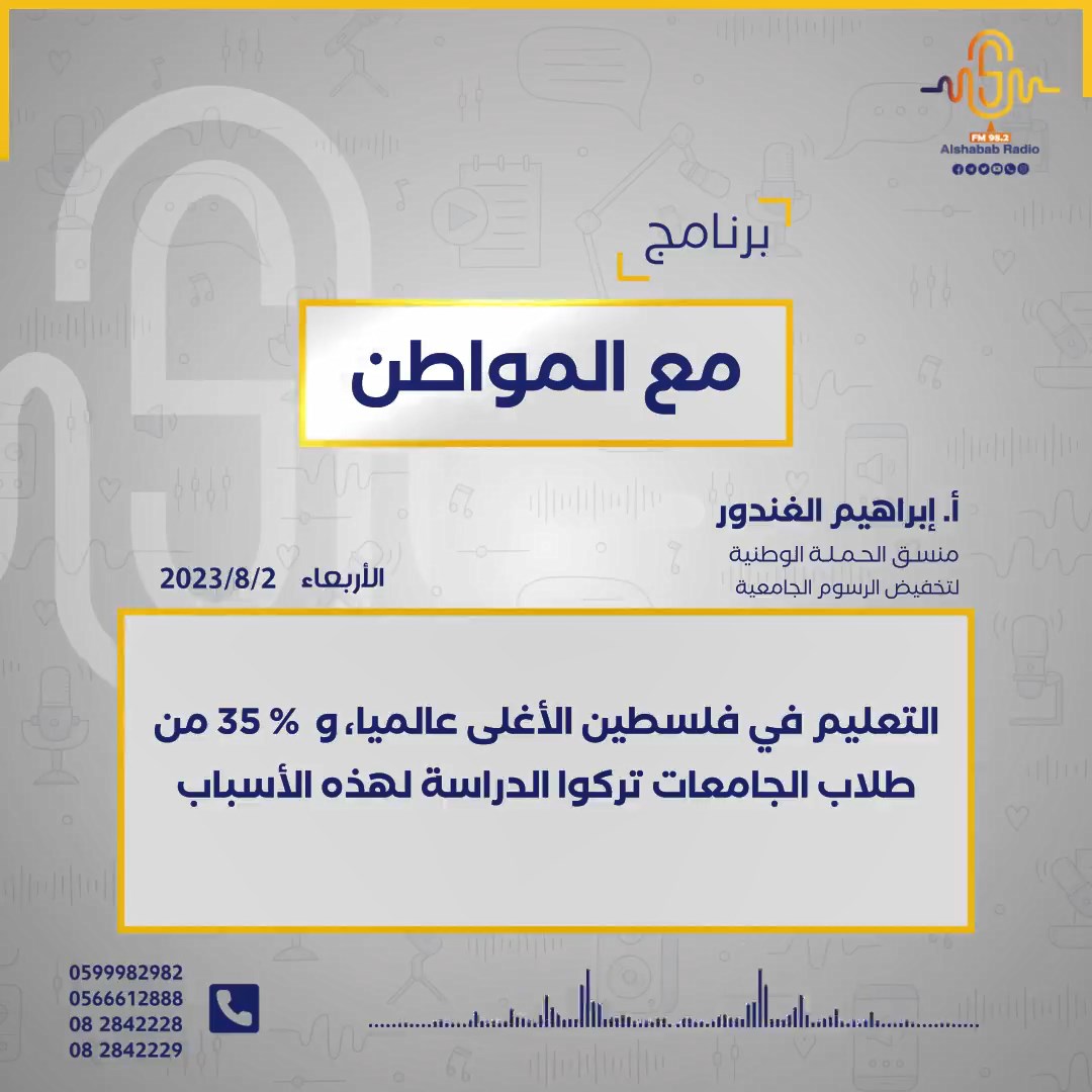 أ. إبراهيم الغندور || التعليم في فلسطين الأغلى عالميا، و 35 % من طلاب الجامعات تركوا الدراسة لهذه الأسباب