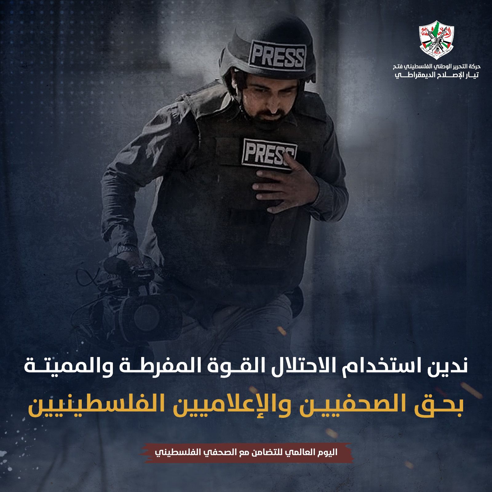 وأدان التيار في حملته استخدام الاحتلال القــوة المفرطة والمميتة بحــق الصحفييــن والإعلاميين الفلسطينيين، بالإضافة لكل أشكال القمع وتقييد حرية الرأي والتعبير، مطالباً بتوفير الحماية والأمان للصحفي الفلسطيني ومحاسبة الاحتلال على جرائمه بحق كل الصحفيين.