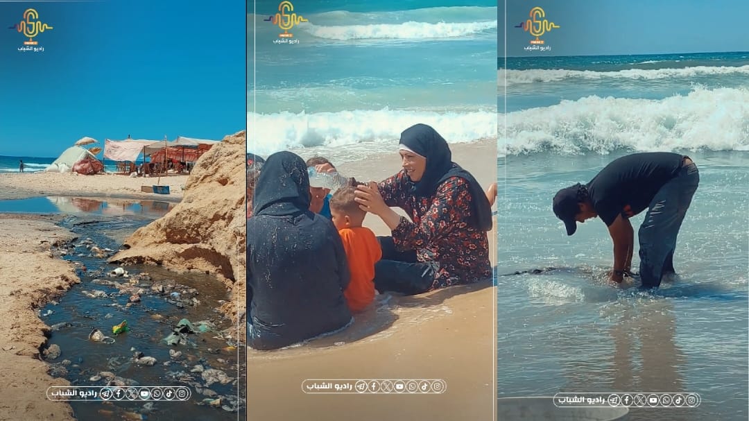 بالفيديو// نازحون يضطرون لاستخدام مياه البحر بسبب انقطاع المياه عنهم