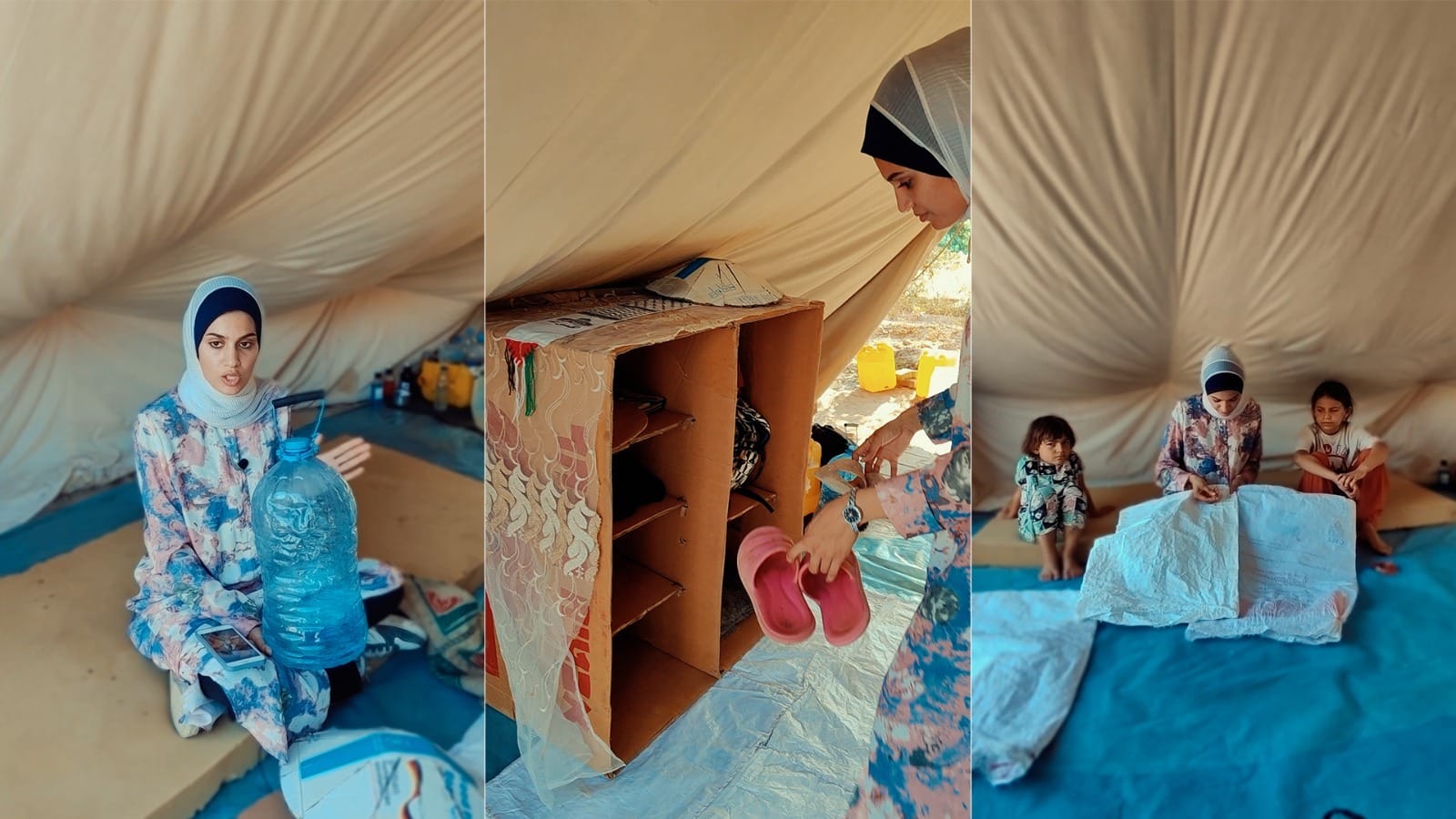 بالفيديو// ابتكار أفكار بسيطة داخل الخيام لتخفيف العبء على النازحين