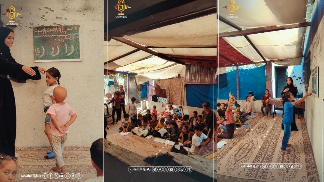 الكوفية وسط منزلها المدمر قررت الشابة آية تأسيس الأطفال في ظل توقف التعليم في المدارس